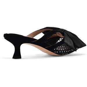 🆕Women Heeled Mules Black Faux Leather Pointed Toe Kitten Heel Bow Slip-on Sand