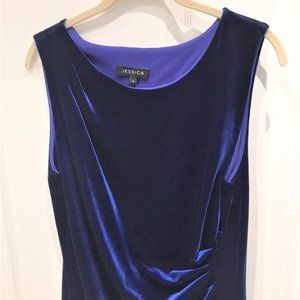 Women Jessica Blue Velvet Sleeveless Mini Dress Size 16 Made in Canada