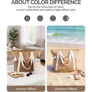 Women Khaki Beach Bag Large Waterproof Sandproof Foldable Tote With Zipper Mesh