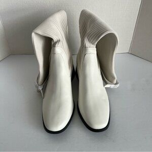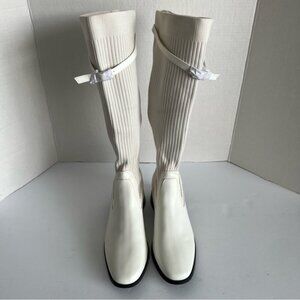 Women Knit Comfort Chunky Heeled High Boots - Off-White. Size: 7.5. (1808)