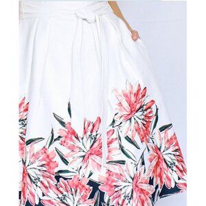 Women Le Chateau Floral Print Cotton Sateen V-Neck White Dress Size XXL