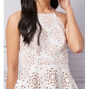 Women Le Chateau Laser Cut Knit Halter Neck White Dress Size XXL