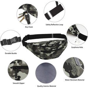 Women Men Camo Green Large Crossbody Fanny Pack Belt Bag Hands-Free Waist Pack
