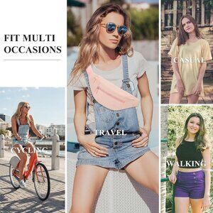 Stylish Fanny Pack,Many Ways to Wear — Since the comfortable long strap is widely adjustable for most waist size(20” - 50”).There are many ways to wear this fanny pack - You can wear it in front of your waist, as a belt bag,back on your hip, slant across your chest or over You shoulder.Perfect for various occasions.