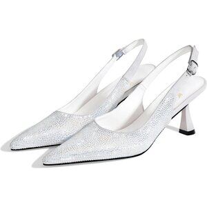 【Glitter Heels】: The sling back heels is decorated with shiny rhinestones, adding a touch of glamour to your outfit, and attracting attention for both everyday wear and formal occasions.