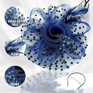 🆕Women Navy Organza Fascinator with Flower Mesh Feathers Tea Party Hat Headband