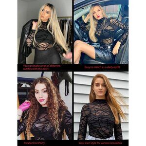 Design: This mesh top is features see through mesh material, long sleeve, mock neck, pull on closure design for you to create your own style for various occasions. It looks cute, simple and sexy, you can't miss out!