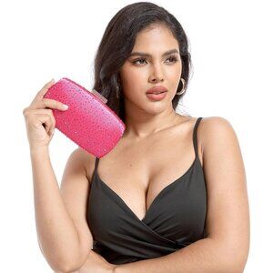 🆕 Women Pink Crystal Clutch Purses Evening Wedding Party Bridal Rhinestone Bags