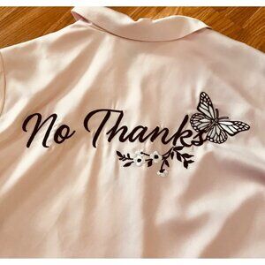 Women Pink Satin Bomber Jacket XXL Chic No Thanks Butterfly Zipper Love & Legend