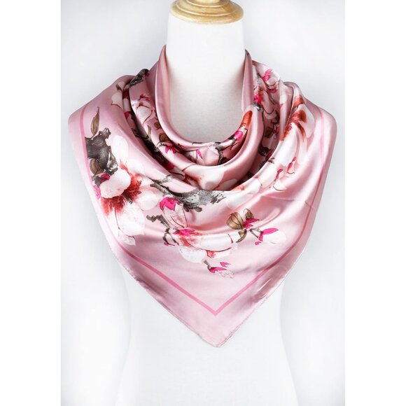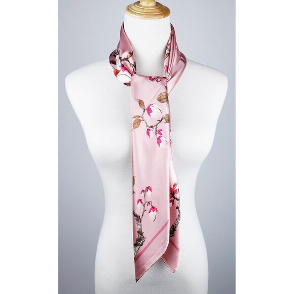 🆕 Women Pink Satin Square Silk Hair Scarves Wraps Smooth Natural Fashionable