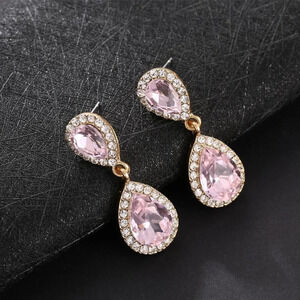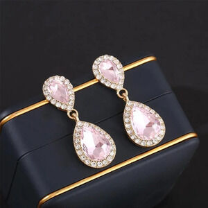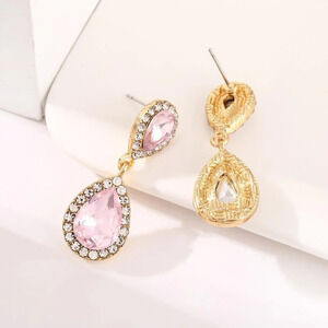 ❤️Women Pink Vintage Dangle Earrings Sparkle Crystal Bridal Drop Formal Prom