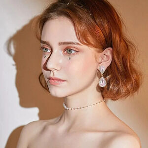 【Teardrop Dangle Design】Double sparkly teardrop crystal stones,the pear-shaped silhouette of these earrings exudes timeless elegance and refinement.The teardrop silhouette of these earrings elongates the neck and adds a graceful flourish to your look. As they gently sway with your movements, they create an elegant and captivating effect that complements any hairstyle or neckline.