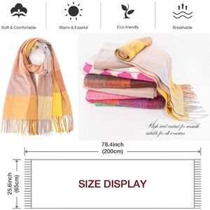 One Size Fits Most: Measuring 200 cm long (including 10 cm tassels on each end) and 70 cm wide, this oversized scarf is designed to fit a variety of body types. Its soft, medium-weight fabric wraps comfortably around any outfit, ensuring you stay warm all day long—an ideal choice for winter warmth.