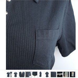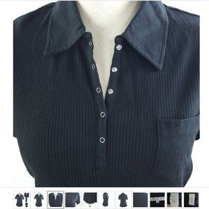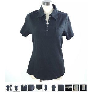 Women Polo Shirt 100% Cotton Ribbed Stretch Black Women Medium AE Sport & Co Top