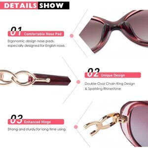TRENDY OVERSIZED STYLE - These womens sunglasses are keeping up closely with the latest fashion trend. They can match with various facial shapes. You can keep these sunglasses on top of your head when you don't use them. Lightweight frame contours to your head so comfortably that you may forget that they are there!
