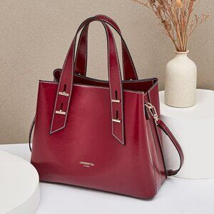 🆕 Women Red Cow Leather Tote Handbag Top-Handle Shoulder Work Purse Pocketbook