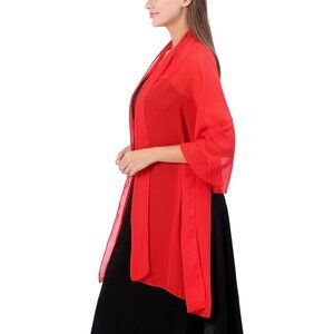 Women Red Elegant Soft Sheer Chiffon Stole Bride Wedding Shawls and Wraps