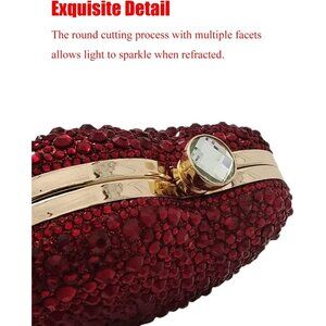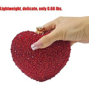 🆕Women Red Rhinestone Heart Shape Mini Clutch Purse Wedding Handbag Party Bag