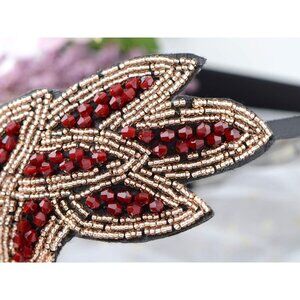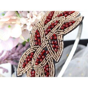 🆕 Women Red Vintage Floral Leaf Flapper Headband High Quality Soft Polish Bead