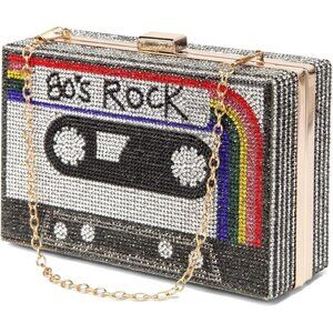 ❤️ Women Retro Radio Shape Crossbody Bag Rhinestone Metal Vintage Clutch Purses