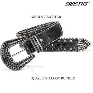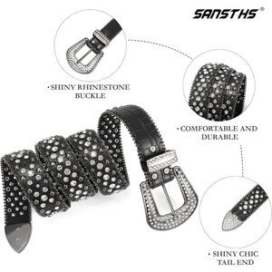 ⚡Women Rhinestone Belt Jeans Western Cowgirl Bling Studded Belt Grain Leather