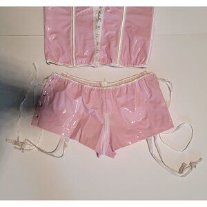 Women Sexy Pink & White PVC Bustier Corset Short Medium Back Lacing LB1151 Adjustable Back Lacing Measurements Bustier: Chest 227", Waist 26"
