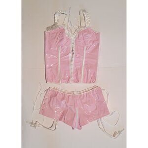 Women Sexy Pink & White PVC Bustier Corset Short Medium Back Lacing LB1151