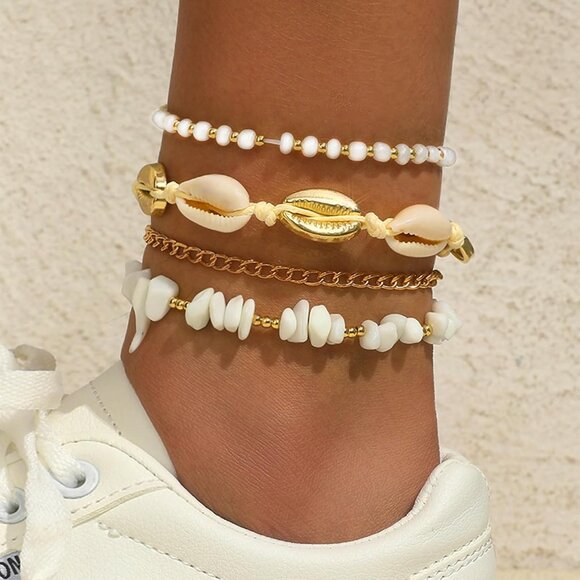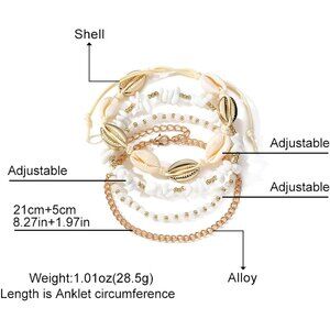 Women Shell Anklet Set Boho Gold Beaded Adjustable Beach Seashell Foot Jewelry