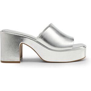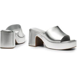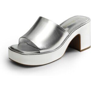 🆕 Women Silver High Chunky Platform Heels Fashion Comfort Slip on Square Sandal