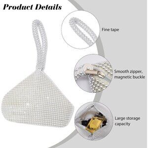 🆕Women Silver Polyester Beaded Triangle Clutch Bag Vintage Elegant Purse Prom