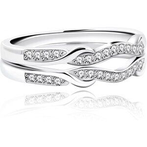 🆕 Women Silver Stack Eternity Rings Infinity Double Wrap Guard Enhancer Wedding