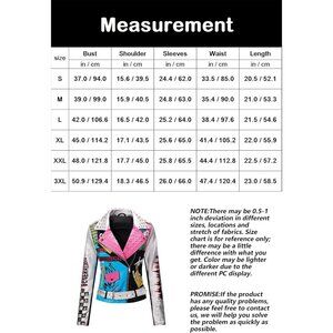 High Quality: The women's Streetwear is made of excellent quality artificial leather, high-end, clear printing and finely textured. Our faux leather jacket is breathable, skin-friendly, windproof and water resistant, keeping you dry and warm in light rain and resisting the wind in cold weather. It's warm enough to wear this trendy motorcycle coat.