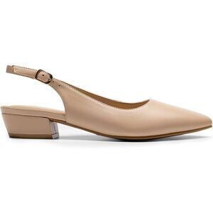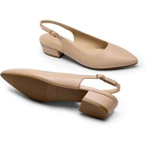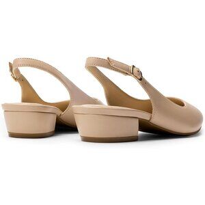 🆕Women Sling back Heel Pointed Closed Toe Low Block Pump Nude Faux Leather Part