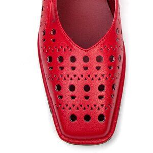 Women Slit-red Square Toe Comfortable Slip-On Lace-Up Loafers Summer Shoes