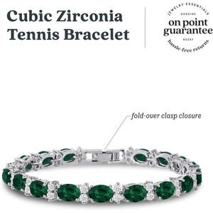 AFFORDABLE ROUND CUBIC ZIRCONIA AND OVAL SIMULATED EMERALD GEMSTONE WITH DIAMOND-LIKE BRILLIANCE: with gorgeous round CZ and emerald simulated gemstone accentuated by silver plated brass, this tennis bracelet will add a diamond-like brilliance to any outfits; go on, enjoy the radiance of CZ at only a fraction of the price of real diamonds and gemstones