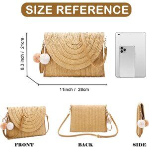 🆕Women Straw Brown Linen Clutch Purse Beach Envelope Crossbody Shoulder Bag