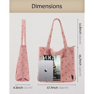 Women Strawberry Corduroy Polyester Lining Shoulder Bag with Zipper And Pockets