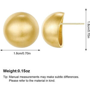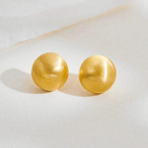 Women Stud Earrings Half-ball Mattle Gold Sliver Studs 14K Brushed Button