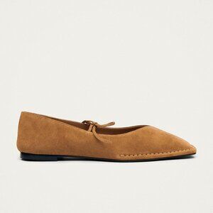 Women Tan Suede Faux Leather Square Toe Lace Up Ballerina Ballet Slip On Flats