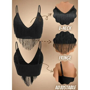 Women Tassel Tank Concert Outfits Festival Clothes Rave V-Neck Sleeveless Shirt