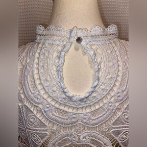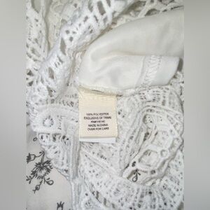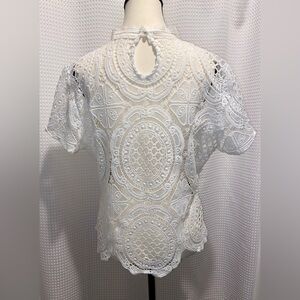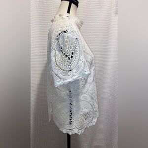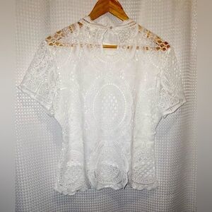 Women Ultra Pink short sleeves all over lace crochet scallop hem white top Sz XL