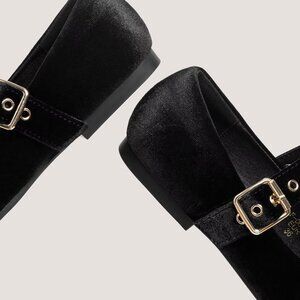 Women Velvet Black Polyurethane (PU) Closed Toe Strap Buckle Ballerina Flats