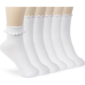 🆕Women White Casual Ankle Socks Cute Ruffle Lightweight Thin Cuff Frilly Design