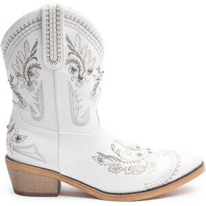Women White Cowgirl with Sparkly Embroidered Rhinestone Short Western Ankle Boot