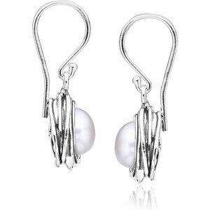 🆕 Women White Dangle Earrings Freshwater Pearl Vintage Design Artisan Jewelry