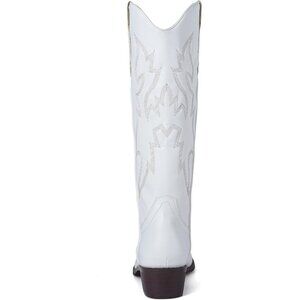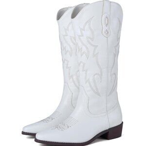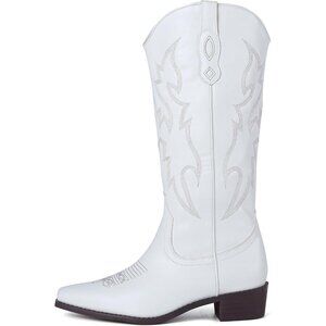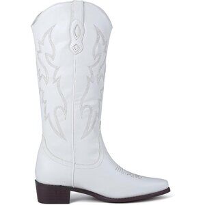 🆕Women White Faux Leather Cowgirl Knee High Cowboy Boots Chunky Heel Western