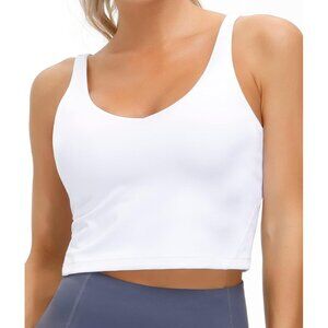 🆕Women White Nylon Sport Bra Padded Yoga Tank Top Longline Workout Running Crop
