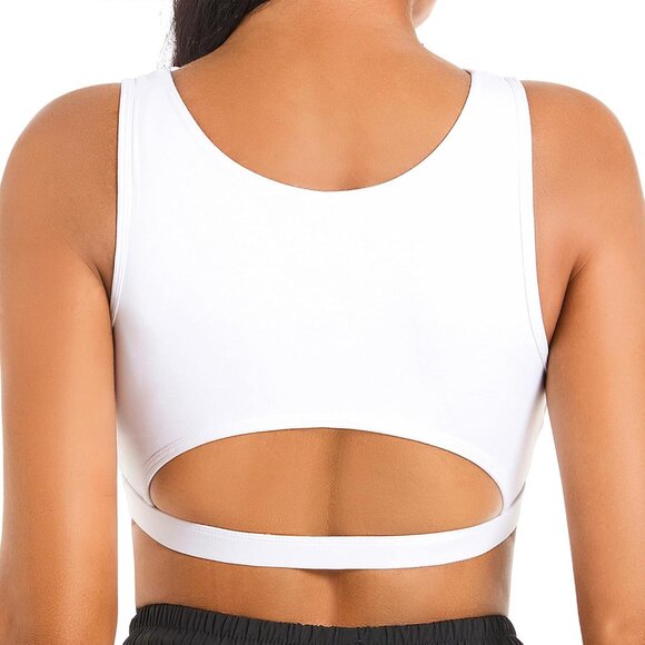 🆕Women White NylonPush Up Sport Bra Hollow Crop Top Medium Support Yoga Workout