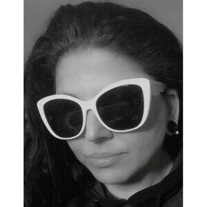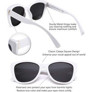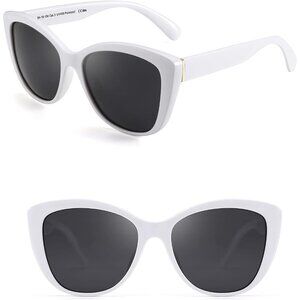 🆕Women White Polarized Cat Eye Sunglasses Vintage Jackie O American Square