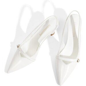 🆕 Women White Polyurethane Kitten Heels Slingback Pearl Pumps